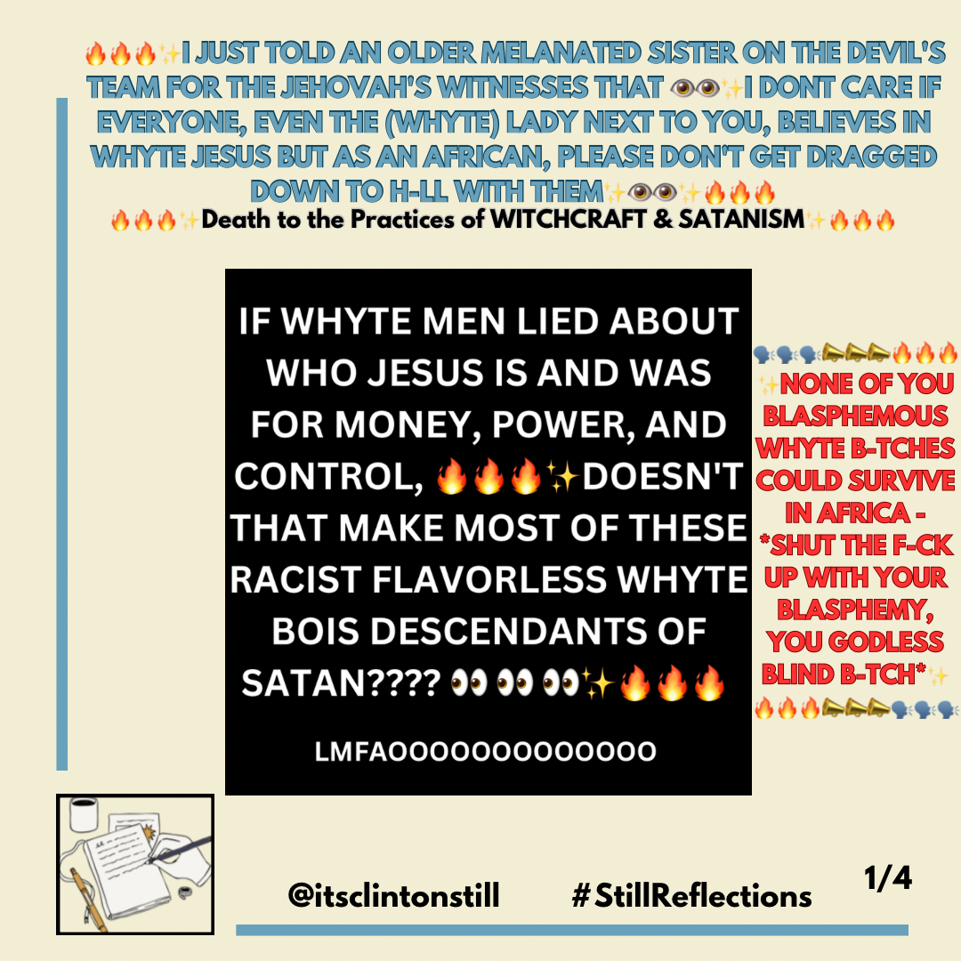🔥🔥🔥✨I JUST TOLD AN OLDER MELANATED SISTER ON THE DEVIL’S TEAM FOR THE JEHOVAH’S WITNESSES THAT 👁️👁️✨I DONT CARE IF EVERYONE, EVEN THE (WHYTE) LADY NEXT TO YOU, BELIEVES IN WHYTE JESUS BUT AS AN AFRICAN, PLEASE DON’T GET DRAGGED DOWN TO H-LL WITH THEM✨👁️👁️✨🔥🔥🔥