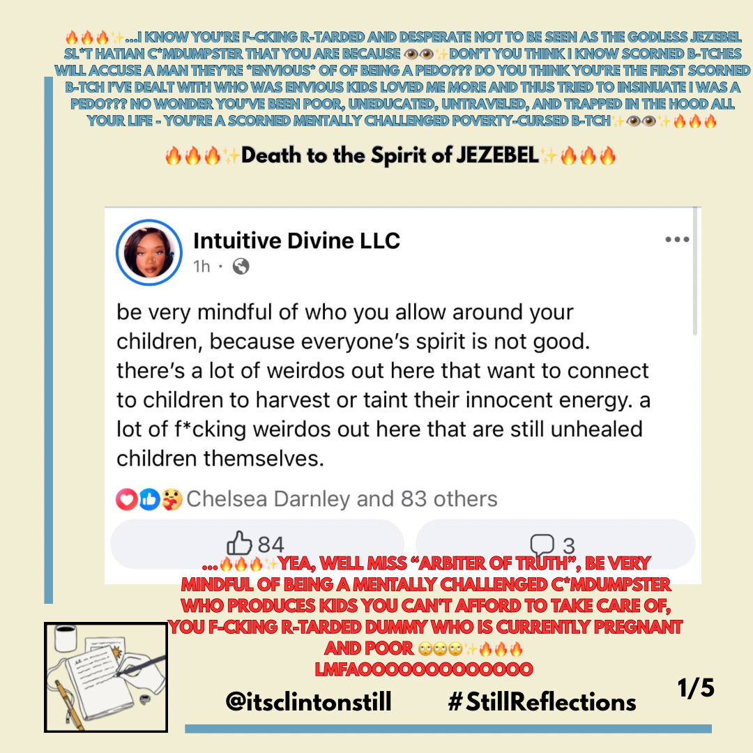 🔥🔥🔥✨…I KNOW YOU’RE F-CKING R-TARDED AND DESPERATE NOT TO BE SEEN AS THE GODLESS JEZEBEL SLT HATIAN CMDUMPSTER THAT YOU ARE BECAUSE 👁️👁️✨DON’T YOU THINK I KNOW SCORNED B-TCHES WILL ACCUSE A MAN THEY’RE ENVIOUS OF OF BEING A PEDO??? DO YOU THINK YOU’RE THE FIRST SCORNED B-TCH I’VE DEALT WITH WHO WAS ENVIOUS KIDS LOVED ME MORE AND THUS TRIED TO INSINUATE I WAS A PEDO??? NO WONDER YOU’VE BEEN POOR, UNEDUCATED, UNTRAVELED, AND TRAPPED IN THE HOOD ALL YOUR LIFE – YOU’RE A SCORNED MENTALLY CHALLENGED POVERTY-CURSED B-TCH✨👁️👁️✨🔥🔥🔥