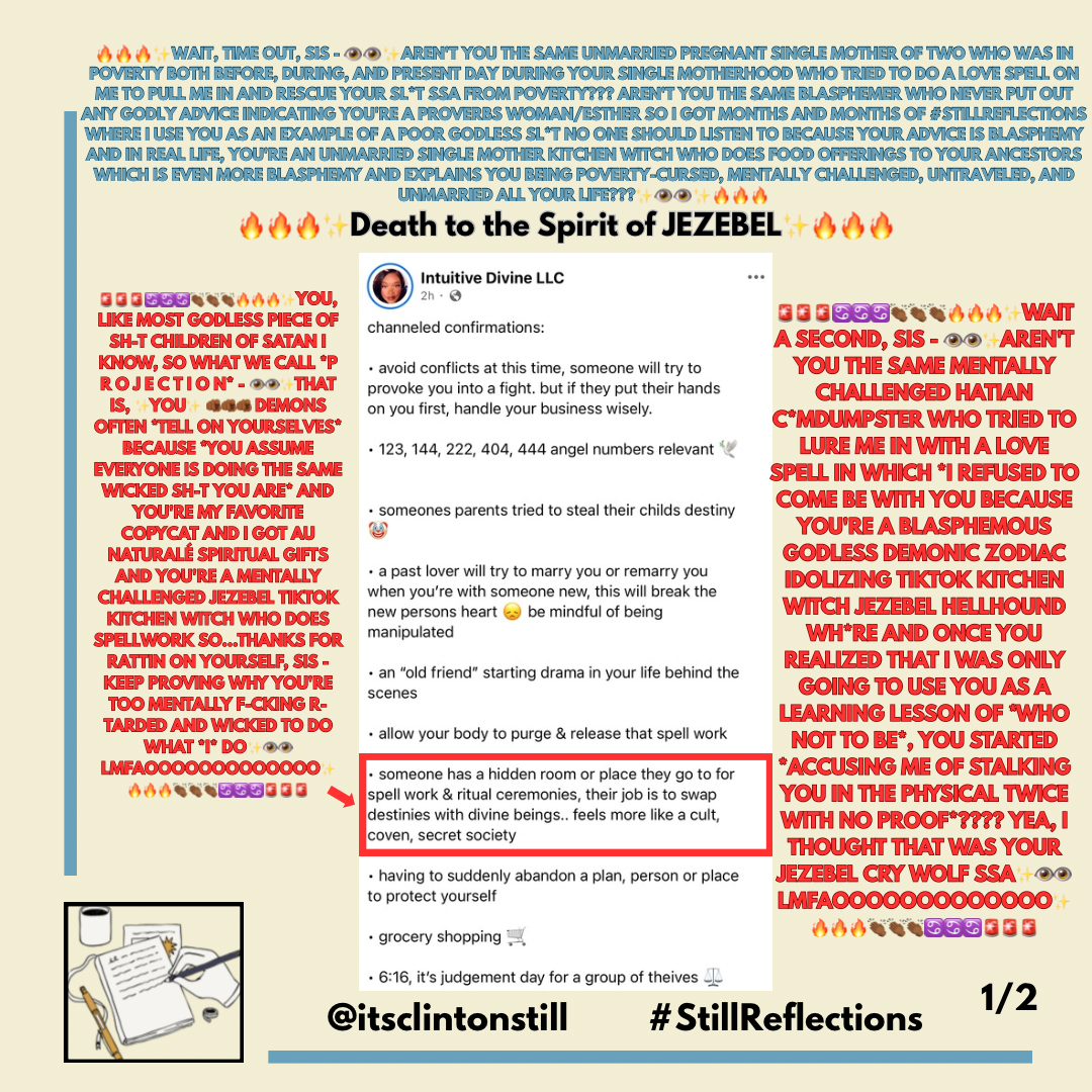 🔥🔥🔥✨WAIT, TIME OUT, SIS – 👁️👁️✨AREN’T YOU THE SAME UNMARRIED PREGNANT SINGLE MOTHER OF TWO WHO WAS IN POVERTY BOTH BEFORE, DURING, AND PRESENT DAY DURING YOUR SINGLE MOTHERHOOD WHO TRIED TO DO A LOVE SPELL ON ME TO PULL ME IN AND RESCUE YOUR SLT SSA FROM POVERTY??? AREN’T YOU THE SAME BLASPHEMER WHO NEVER PUT OUT ANY GODLY ADVICE INDICATING YOU’RE A PROVERBS WOMAN/ESTHER SO I GOT MONTHS AND MONTHS OF #STILLREFLECTIONS WHERE I USE YOU AS AN EXAMPLE OF A POOR GODLESS SLT NO ONE SHOULD LISTEN TO BECAUSE YOUR ADVICE IS BLASPHEMY AND IN REAL LIFE, YOU’RE AN UNMARRIED SINGLE MOTHER KITCHEN WITCH WHO DOES FOOD OFFERINGS TO YOUR ANCESTORS WHICH IS EVEN MORE BLASPHEMY AND EXPLAINS YOU BEING POVERTY-CURSED, MENTALLY CHALLENGED, UNTRAVELED, AND UNMARRIED ALL YOUR LIFE???✨👁️👁️✨🔥🔥🔥